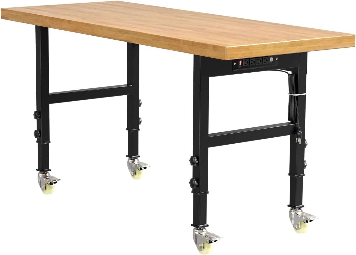 Adjustable height for customizable workspace.Solid wood surface for reliability and stability.